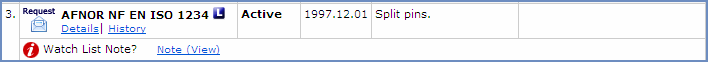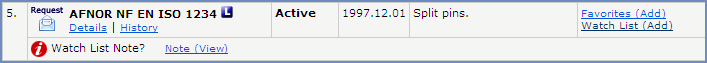 On the Search Results and Watch List pages, the Account Note is displayed below the document information.