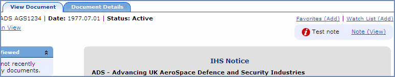 Users view Account Notes on the Search Results, View Document, Document Detail, and Watch List pages.