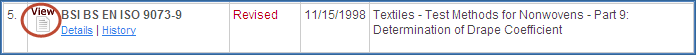 When you click on the View icon in a results list, the View Documents tab displays with an IHS Notice informing you that there are Terms and Conditions for the use of the selected document. The details of the Terms and Condition of user are detailed on the IHS Legal Statement.